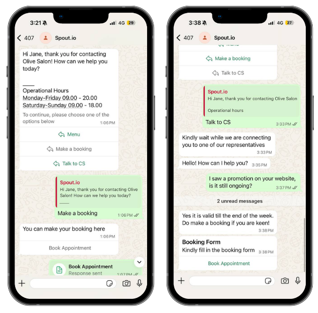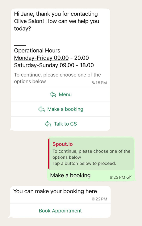 Common questions are answered instantly, availability is checked in real time, and customers are guided to book, reschedule, or cancel — all through WhatsApp.