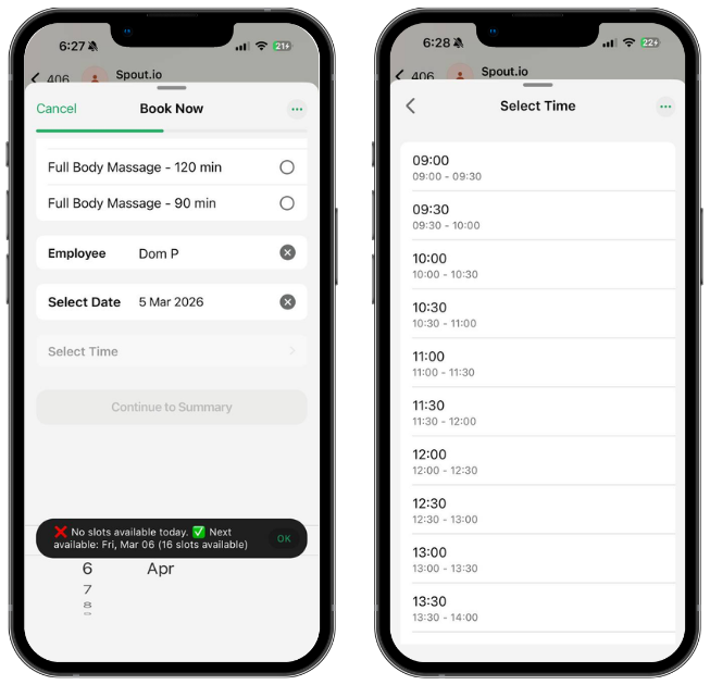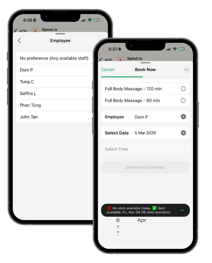 Let customers book with their preferred staff based on your team’s real-time availability.
