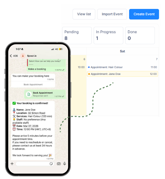 Appointments sync automatically to your calendar and CRM — no manual updates, no double bookings