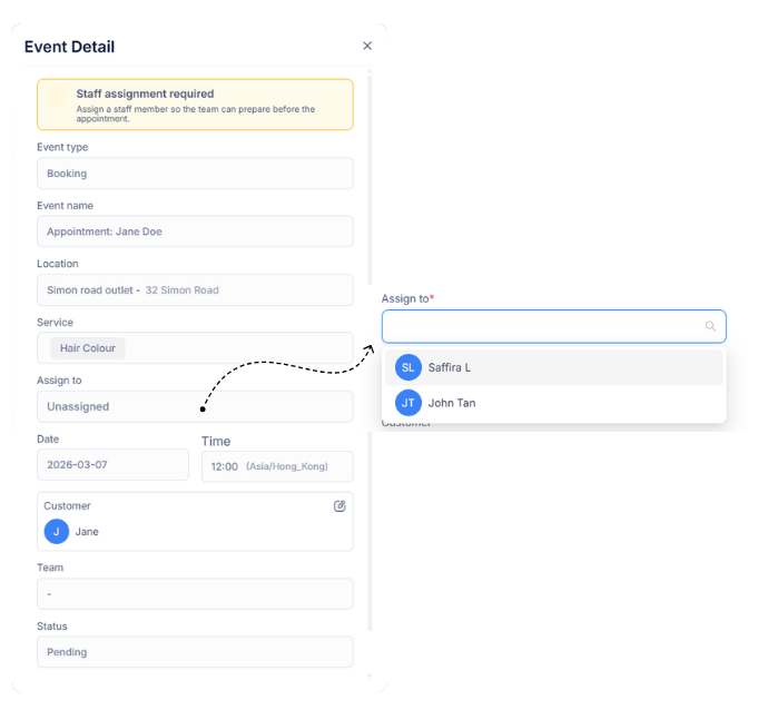 Automatically route bookings to the right staff based on availability or preference, so your team always knows who’s responsible.