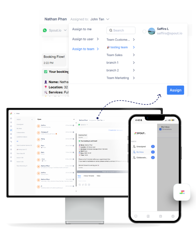 Stop juggling messages across devices and teams. Let Spout route conversations to the right people automatically.
